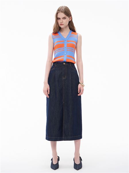 平坦腹肉車縫線針織牛仔傘裙