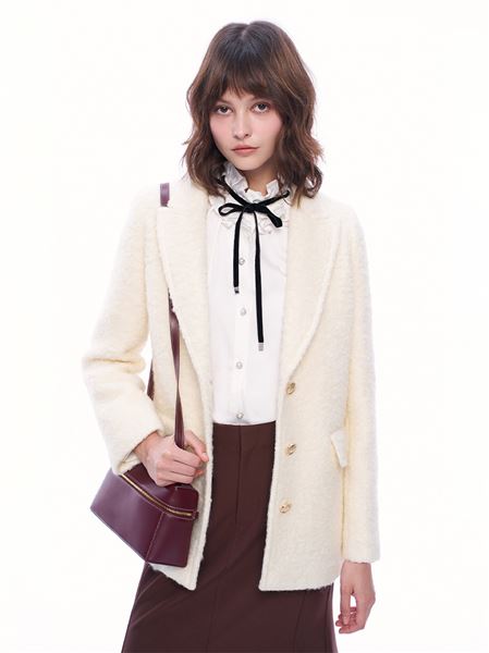 大口袋雪花雙排釦羊毛外套