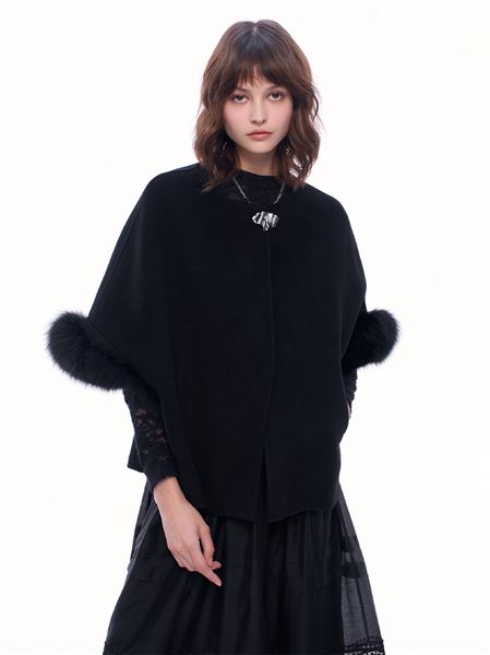 貴婦100%羊毛狐狸毛2way斗篷外套-淺卡其