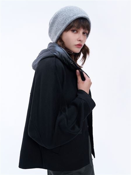 人氣追加 | 短版混紡雙面毛呢帽可拆鋪棉外套-黑