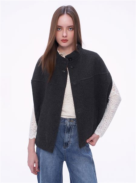 M+ | 奢華雙面毛呢綿羊毛繭型斗篷-黑