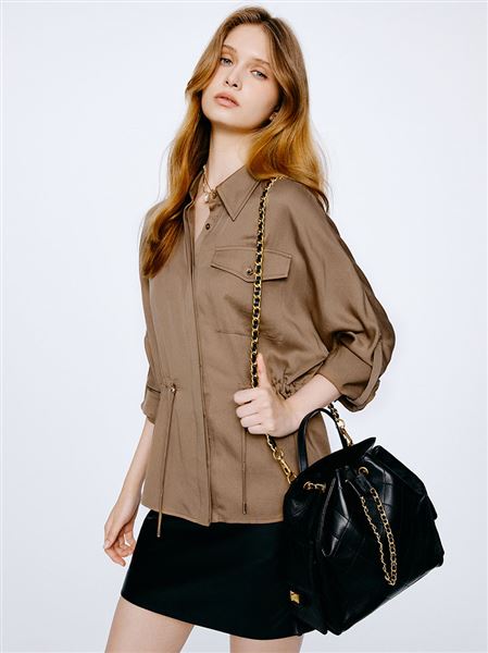 完美曲線細閃抽皺火山領上衣