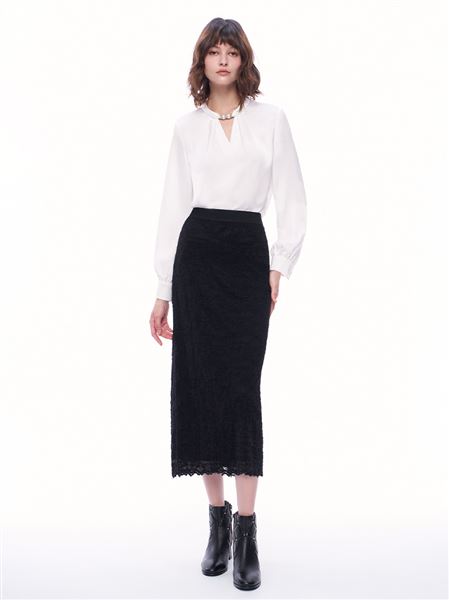 M+ | 精緻女人花邊車股蕾絲皮長裙