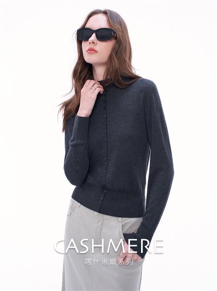 M+ | 簡約美學羊絨小立領針織上衣-灰