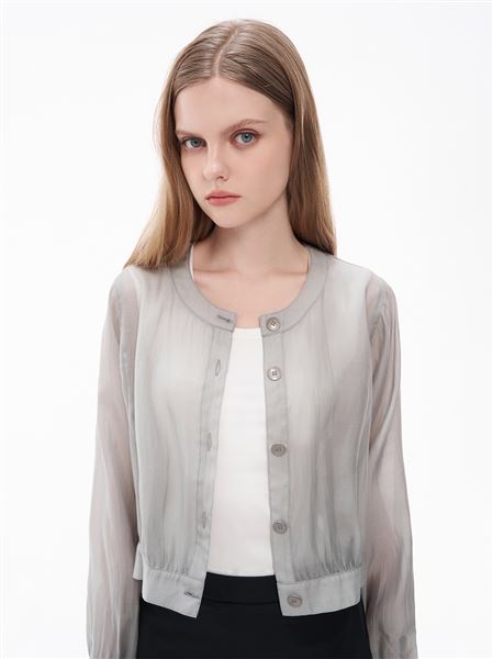 透肌萊賽爾泡泡飛鼠袖短版外套