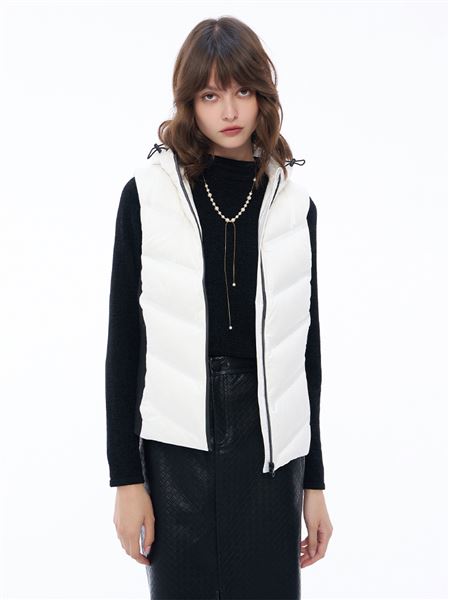 自帶腰線鴨絨針織連帽背心