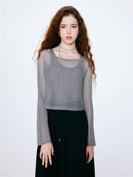打光肌坑條紋2way歐根紗上衣