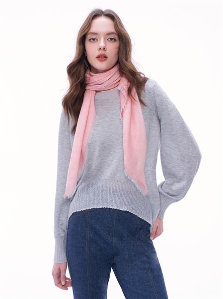 軟糯羊絨感針織泡泡袖上衣-淺紫