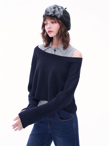 光澤柔軟羊毛假兩件式針織上衣