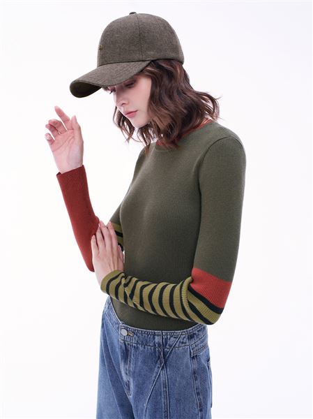 復古撞色圓領羊毛針織上衣