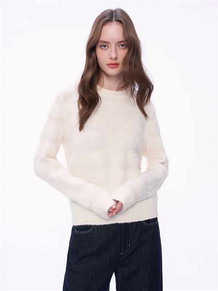 M+ | 慵懶透膚暖意羊毛針織上衣-米白