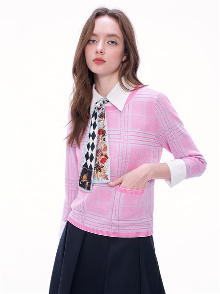 文青甜酷風窗型格紋針織上衣