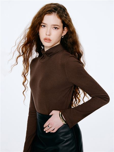 【絕版珍藏】M+ | 萊賽爾高領開衩羊毛上衣-咖啡