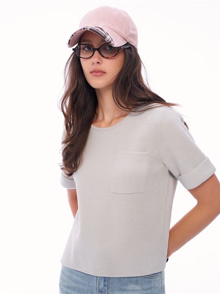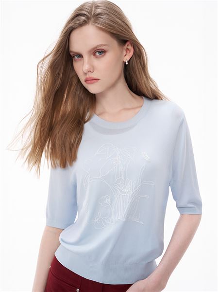 【官網獨賣】斜紋鏤空柳絮抽鬚冰爽絲五分泡泡袖針織上衣