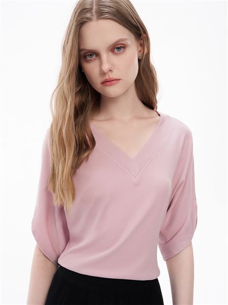【官網獨賣】柔軟鬱金香五分寬袖棉彈布上衣-粉
