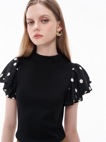 【官網獨賣】甜美波卡圓點雙層荷葉蓬袖冰爽絲針織上衣