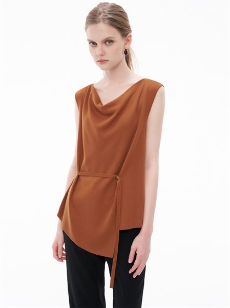【官網獨賣】率性垂領不規則包芯紗針織背心-咖啡