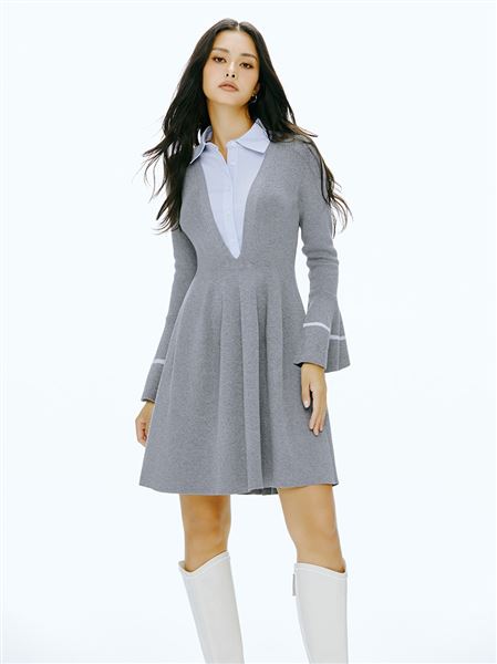 【官網獨賣】氣質羊毛混紡針織假兩件式洋裝