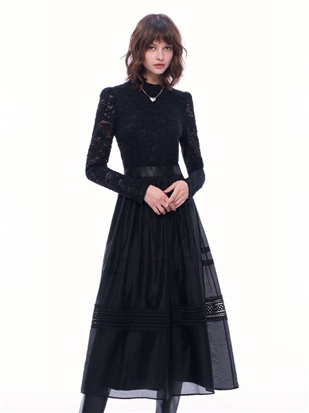【絕版珍藏】高貴磨毛蕾絲鏤空雕花長洋裝
