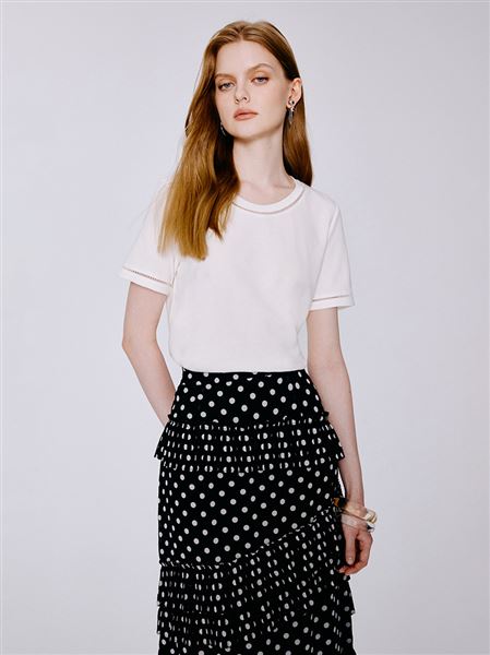 簡約銀珠描邊圓領太空棉上衣-白