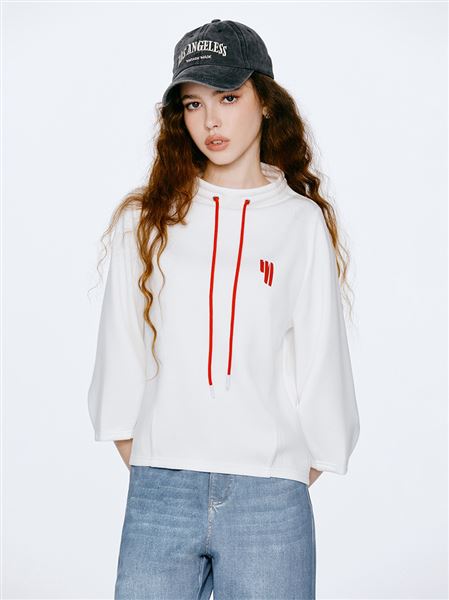 街頭感小立領七分泡泡袖太空棉上衣-白