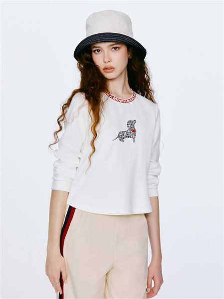 時尚字母臘腸狗狗牙刷繡太空棉上衣-白