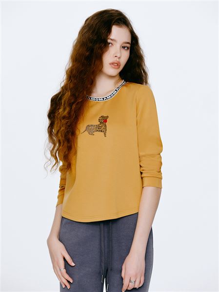 時尚字母臘腸狗狗牙刷繡太空棉上衣-芥黃