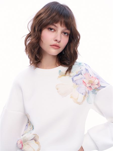 人氣追加 | 彩繪花園盛宴刺繡亮片太空棉短版上衣