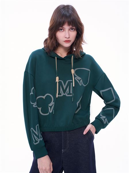 街潮噴印撲克太空棉連帽上衣-深綠