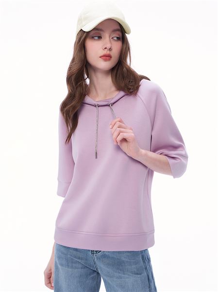 廓形泡泡袖太空棉微短版上衣-紫