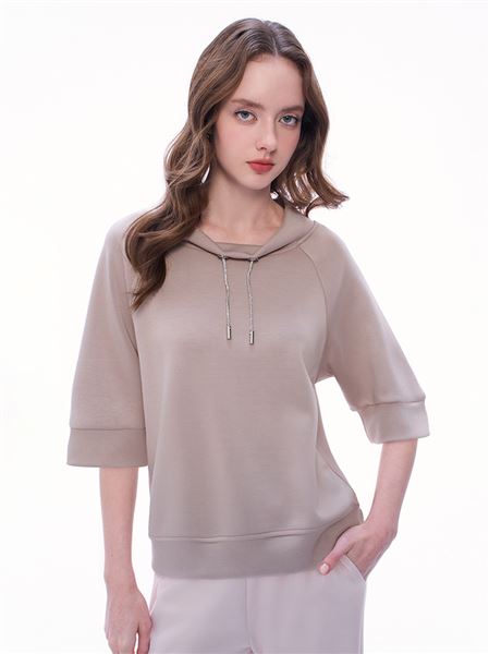 有型立領水鑽抽繩太空棉上衣-卡其