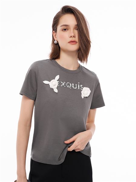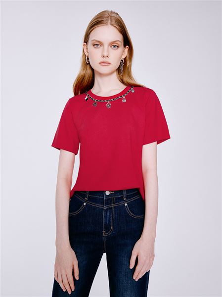撞色織帶網紗小愛心空氣棉上衣-暗紅