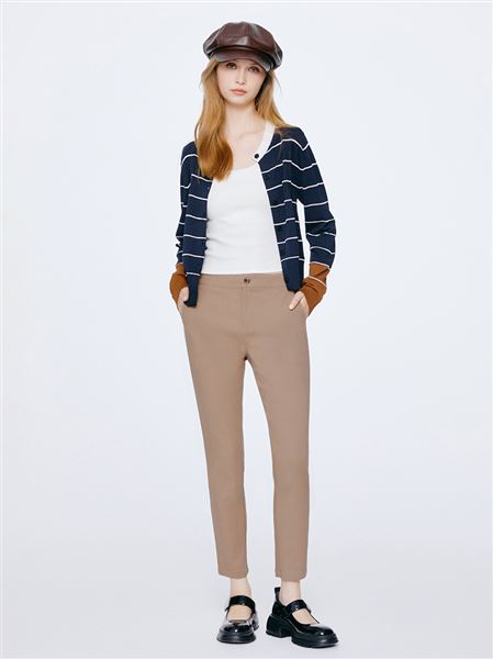 纖長撞色褲腰彈力九分鉛筆褲-卡其