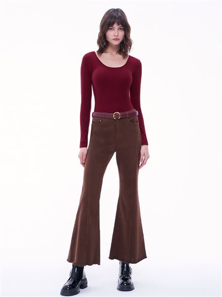 人氣追加 | 巧克力牛奶抽鬚不收邊內磨毛小喇叭褲