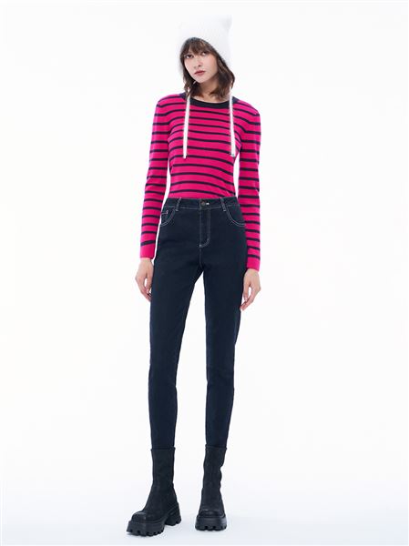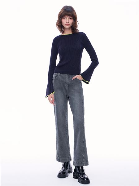 M+ | 慵懶漫步針織牛仔綿羊毛錐形褲
