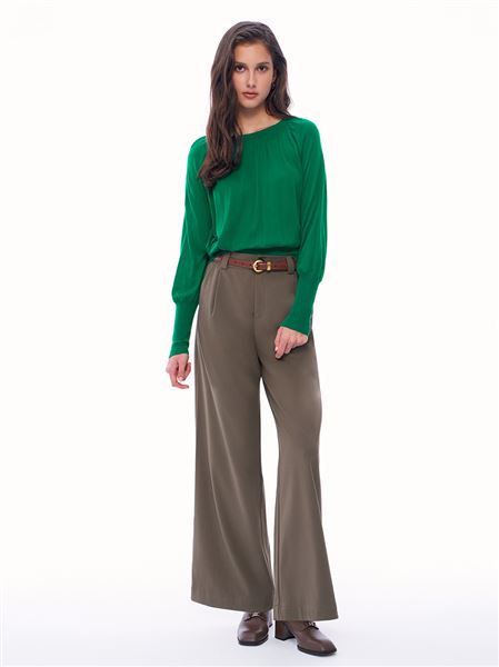 俐落感M字釦羊毛直筒寬褲-咖啡