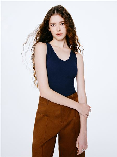 人氣追加 | 美背小心機緹花蕾絲羊毛太空棉BRA TOP-深藍