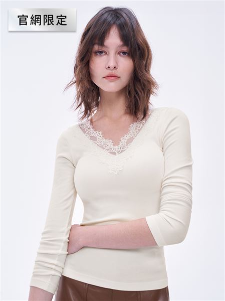 幾何小花蕾絲刷毛V領Bratop-米白 | 官網限定