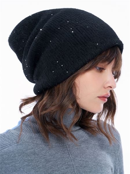 人氣追加 | 都會微光心動亮鑽針織毛帽-黑