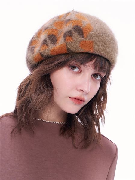 時尚幾何100%羊毛貝雷帽-咖啡