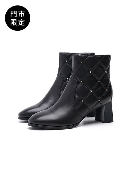 菱格壓紋經典鉚釘方根短靴-黑