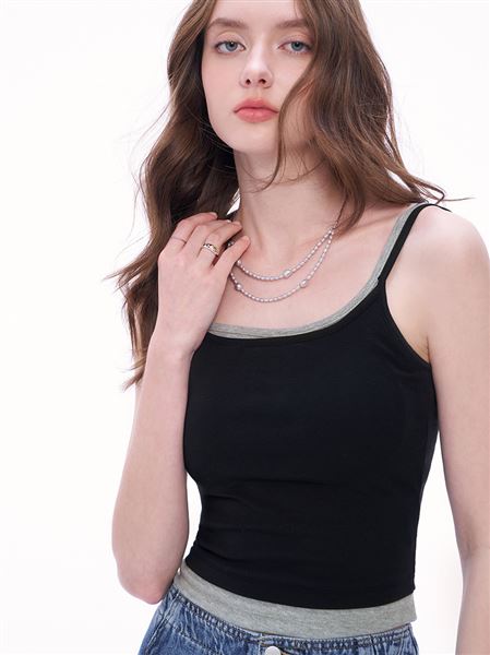 人氣追加 |百搭撞色美背棉感假兩件Bratop-黑