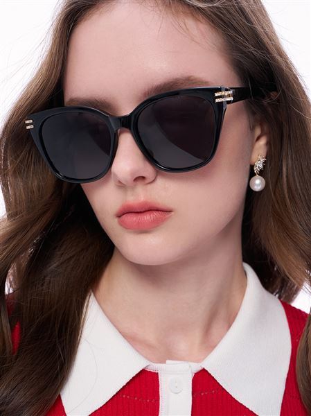 摩登氣場雙排鑽飾貓眼墨鏡-黑