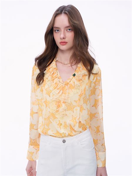 蕾絲荷葉領楊桃星星雪紡襯衫