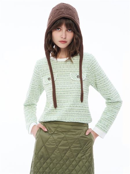 清新小香細閃編織釦開衩上衣-淺綠