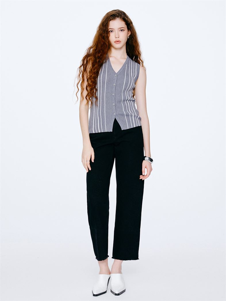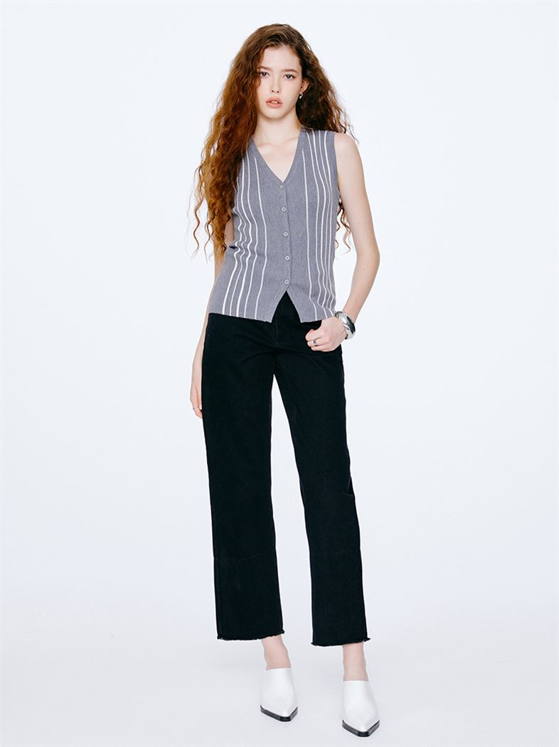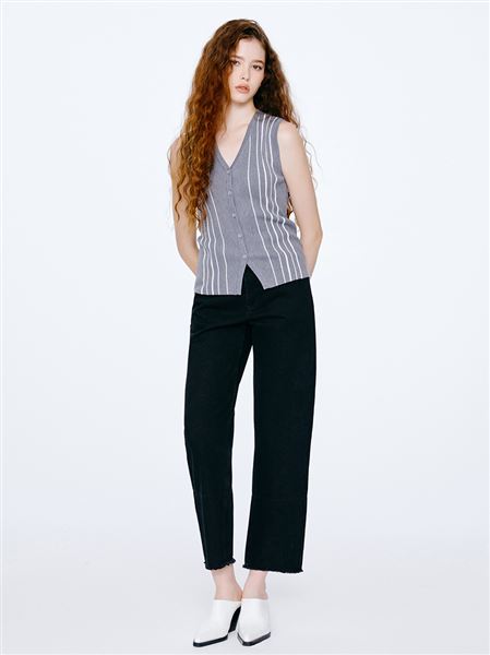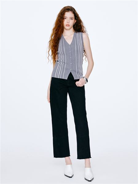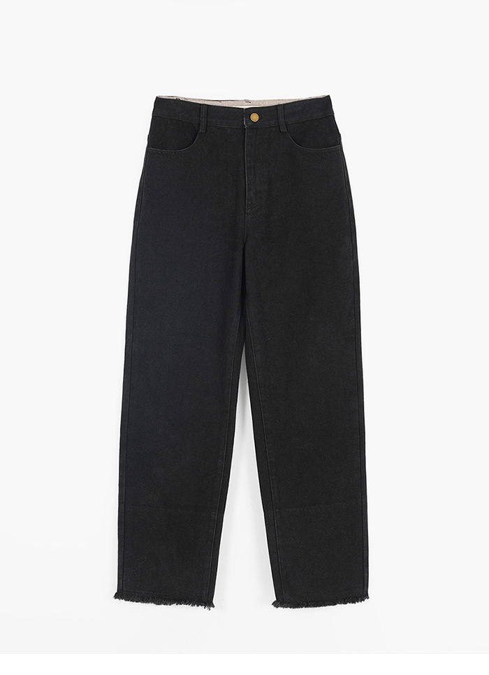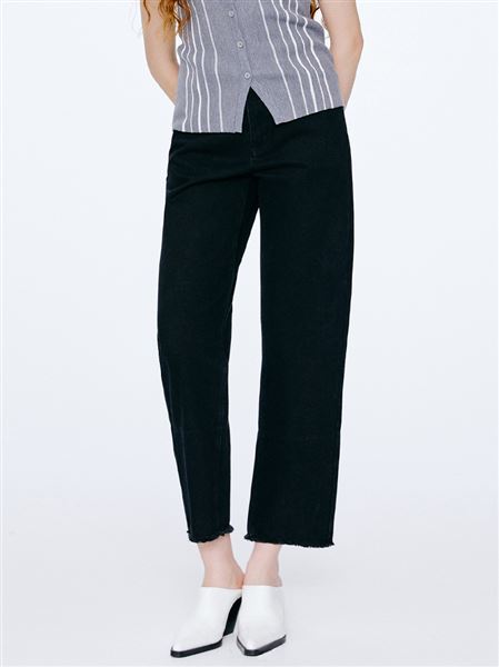 - 錐形版型與褲管毛邊造型,時髦修飾假胯寬