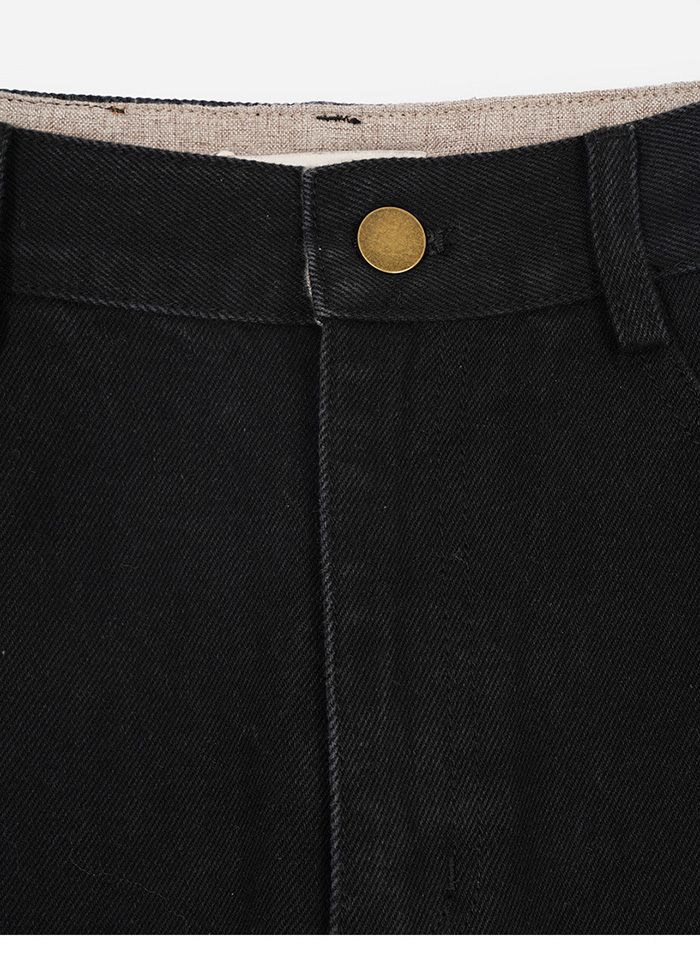 - 前襠復古金鈕釦與拉鍊及腰部整圈有腰袢