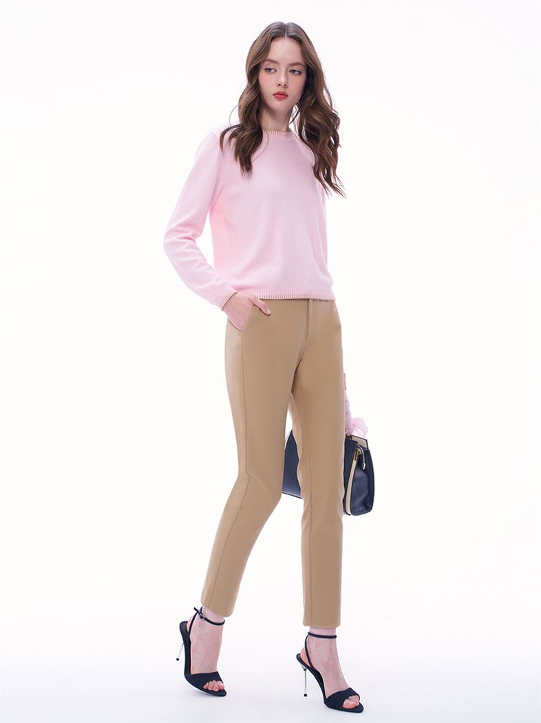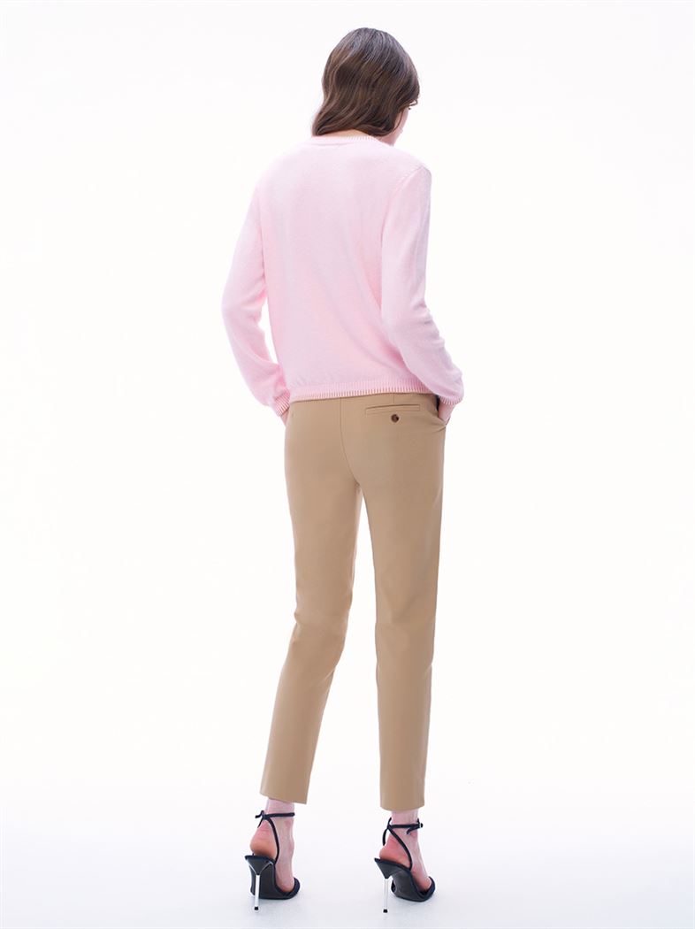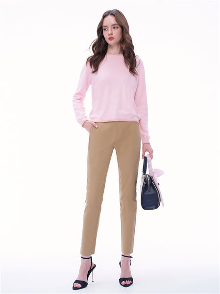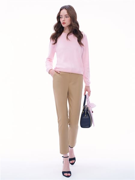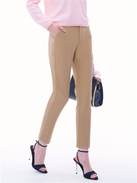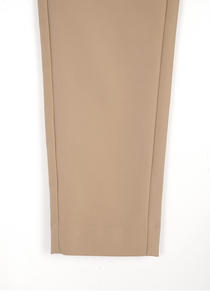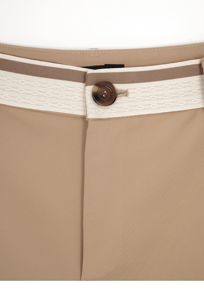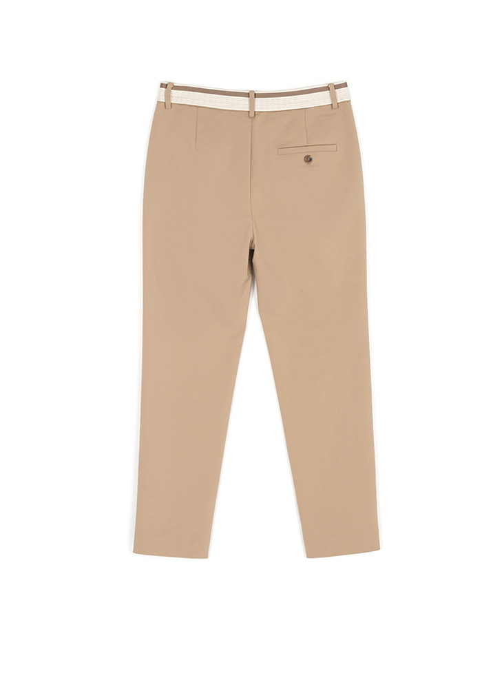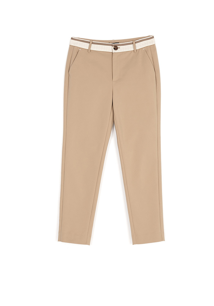 渡假感織帶錦棉小直筒褲-卡其