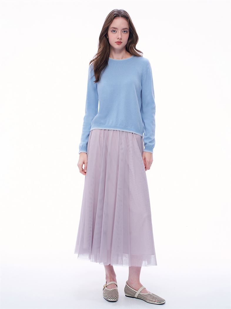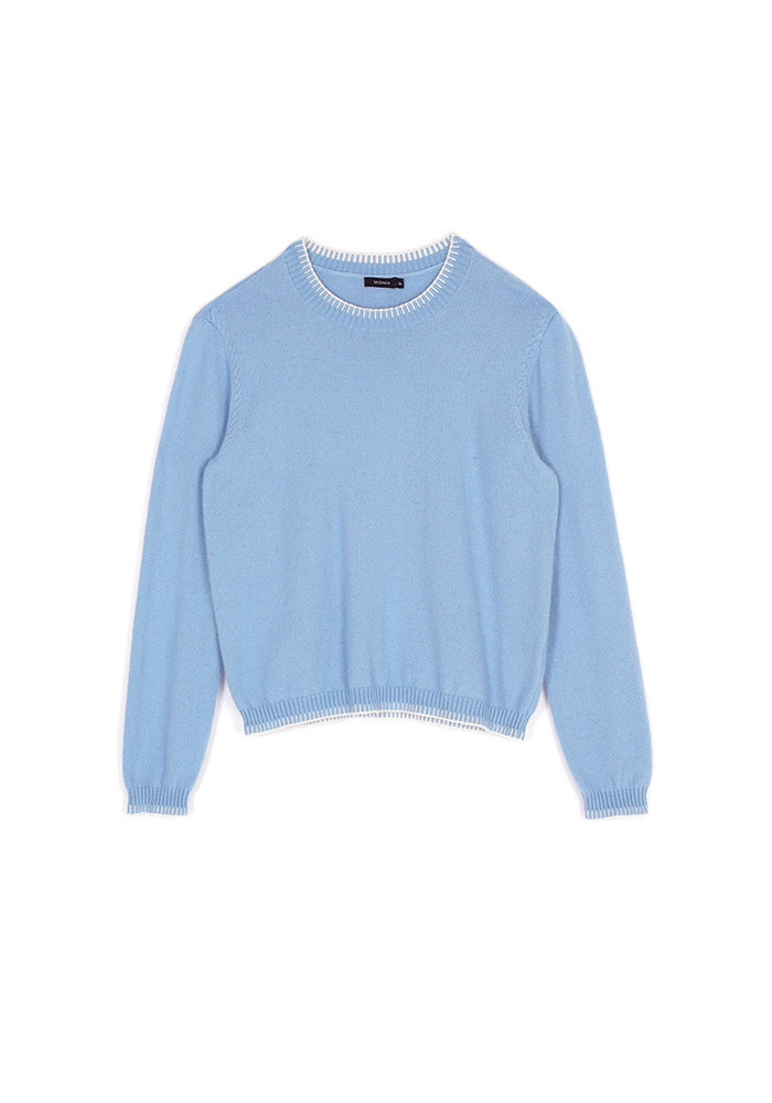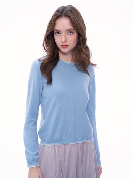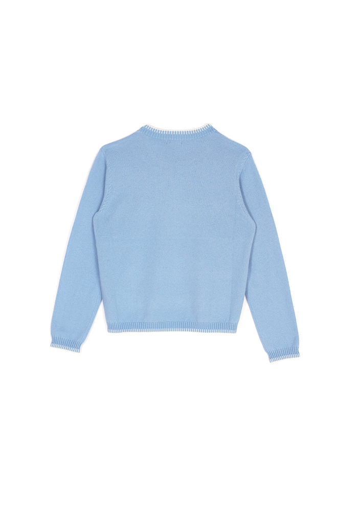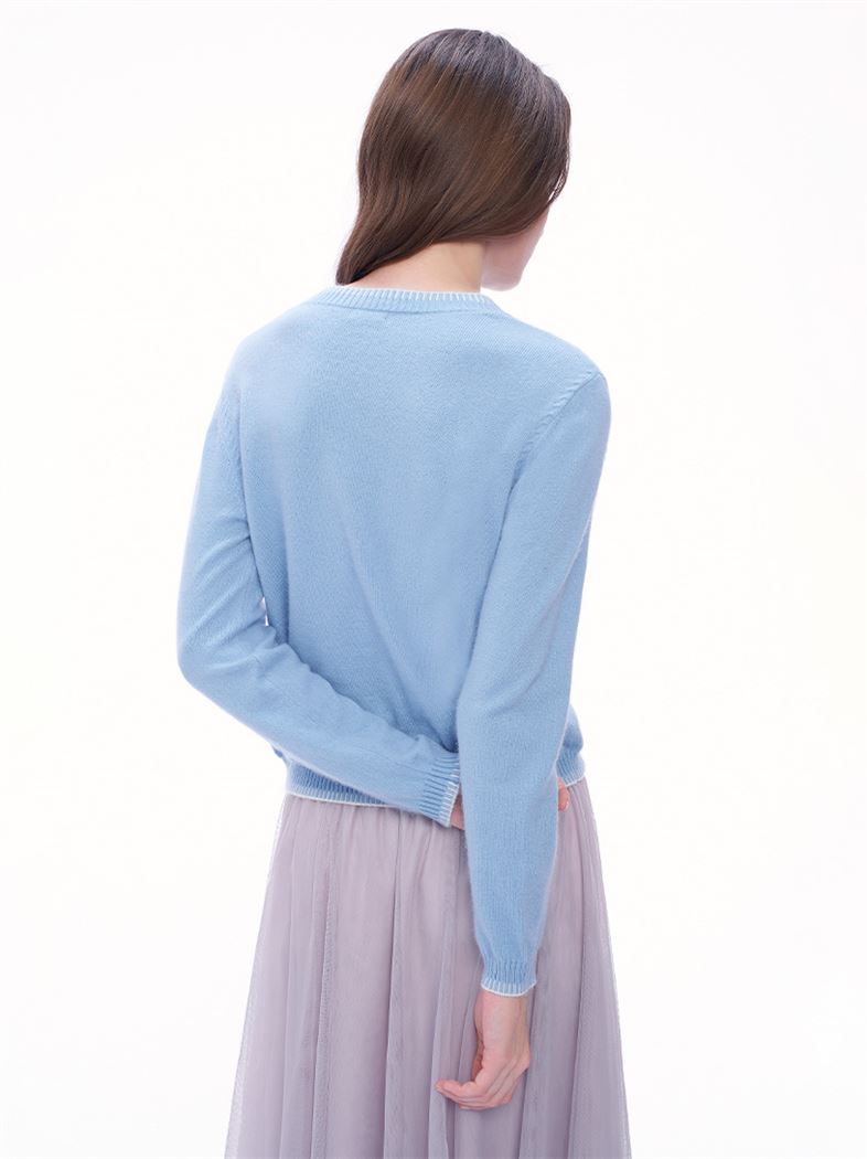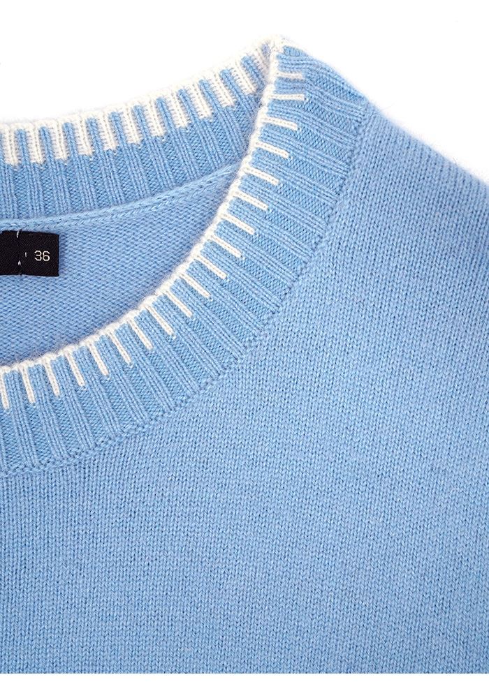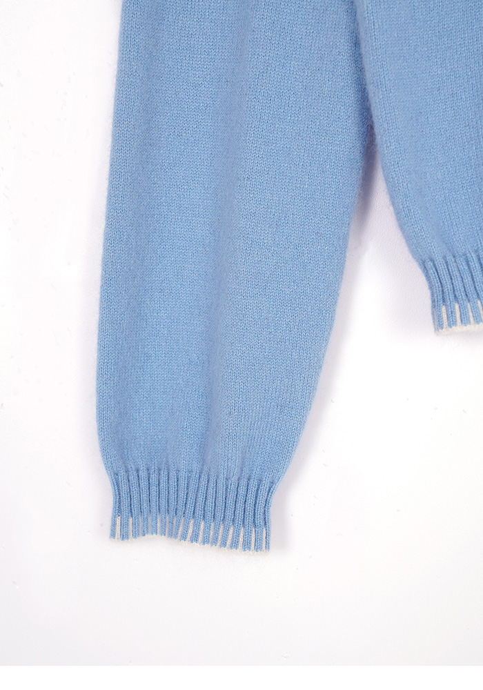 軟膚膚毛毛撞色浣熊絨羊毛毛衣-淺藍