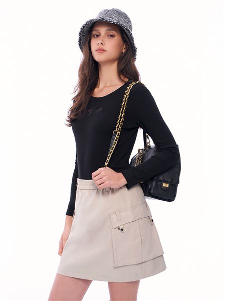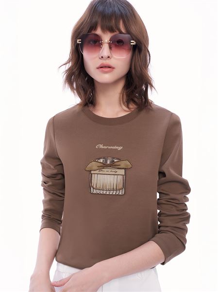 女性魅力香水瓶立體串珠蝴蝶結上衣-咖啡